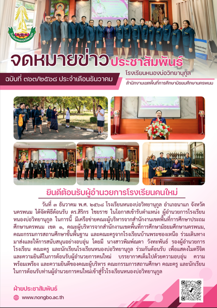 ต้อนรับ ดร.สิริกร ไชยราช ในโอกาสเข้ารับตำแหน่ง ผู้อำนวยการโรงเรียนหนองบ่อวิทยานุกูล