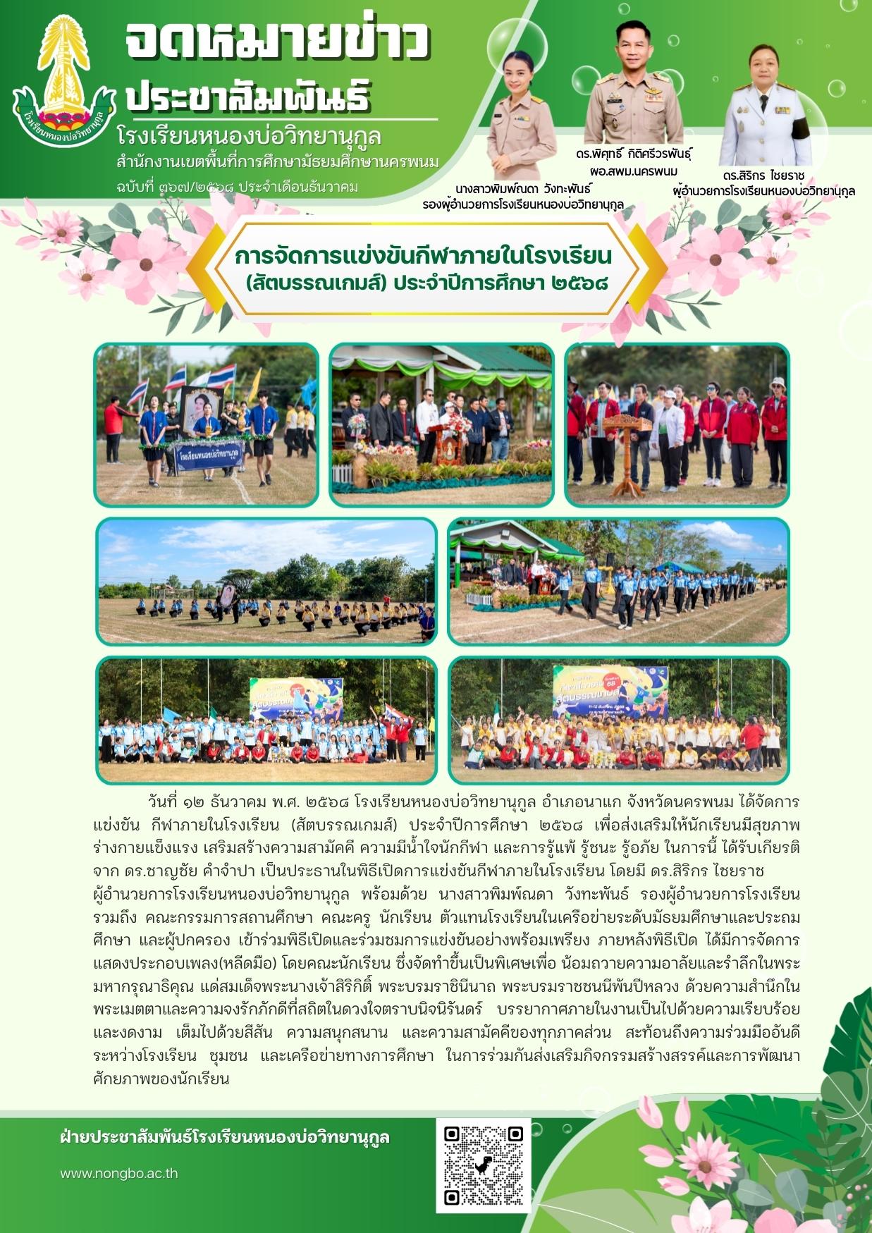 การจัดการแข่งขันกีฬาภายในโรงเรียน (สัตบรรณเกมส์) ประจำปีการศึกษา ๒๕๖๘