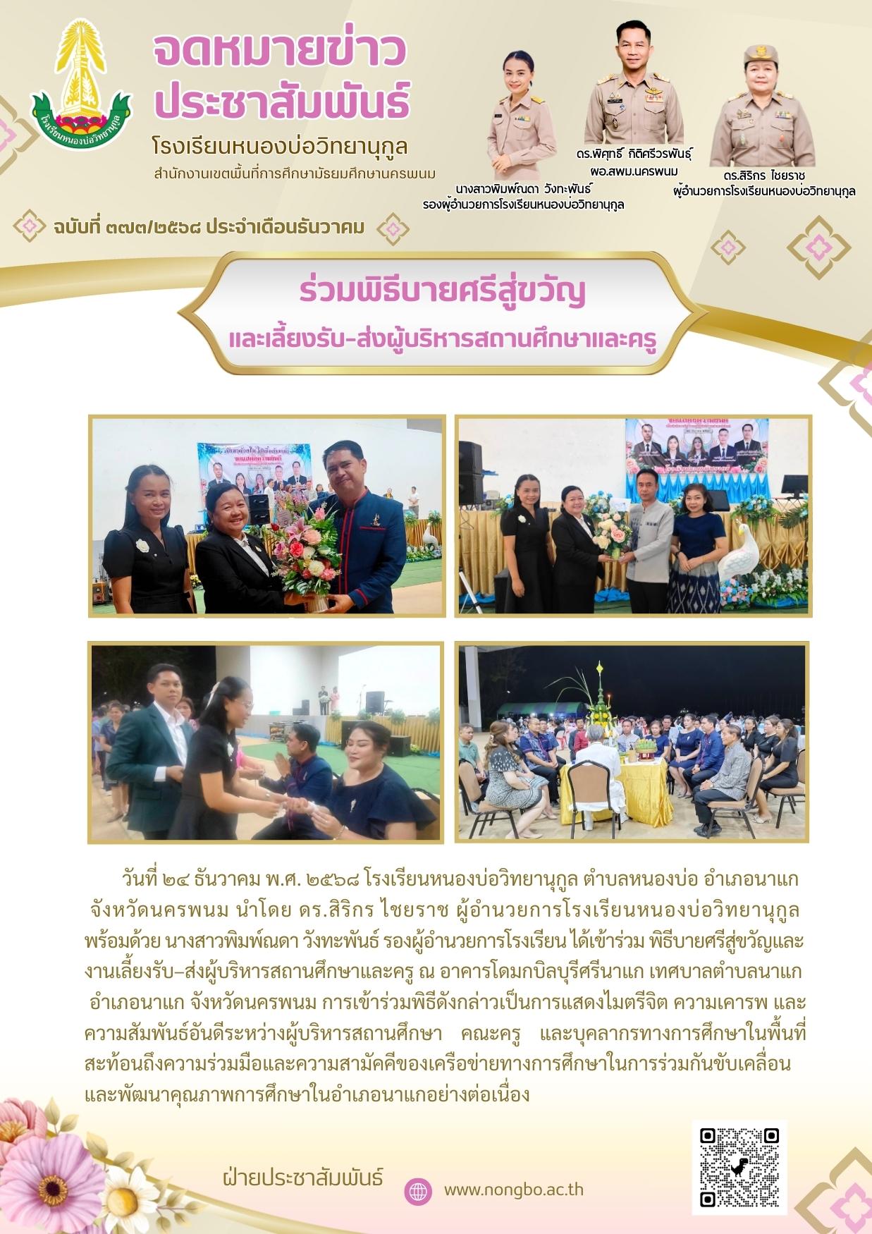 ร่วมพิธีบายศรีสู่ขวัญ และเลี้ยงรับ–ส่งผู้บริหารสถานศึกษาและครู